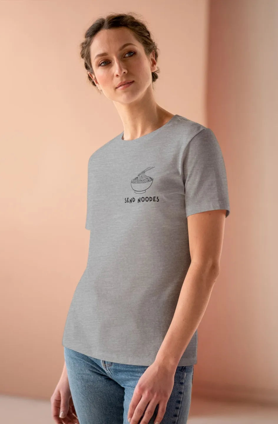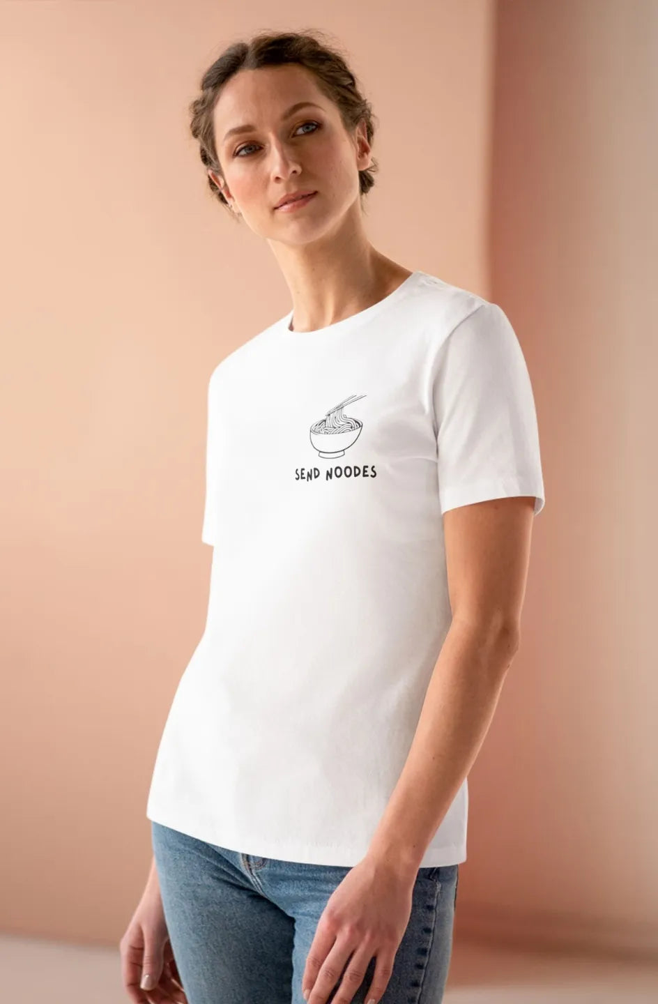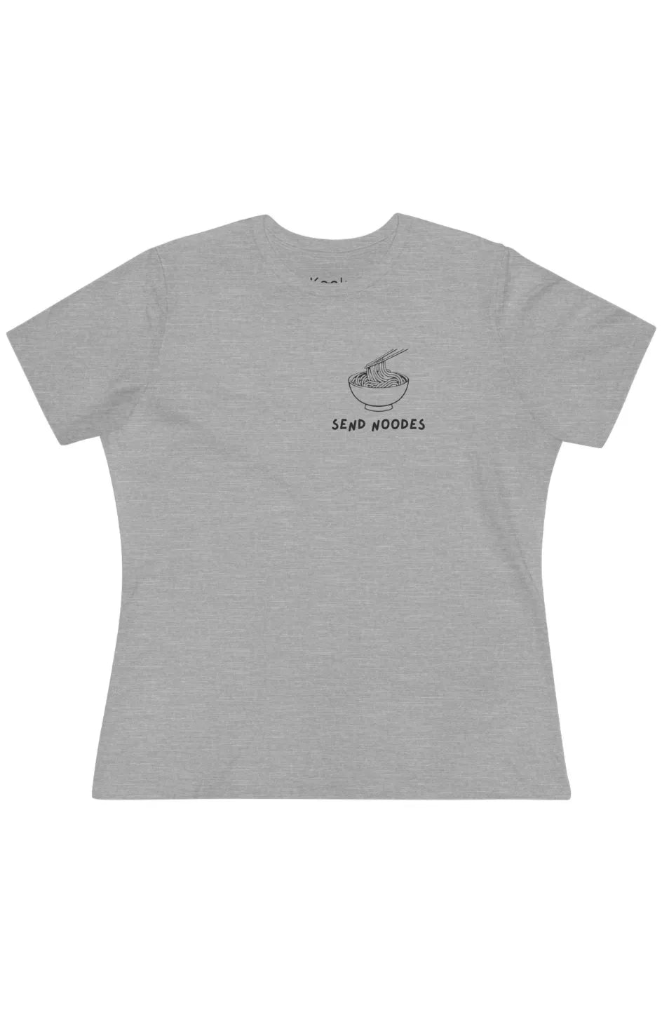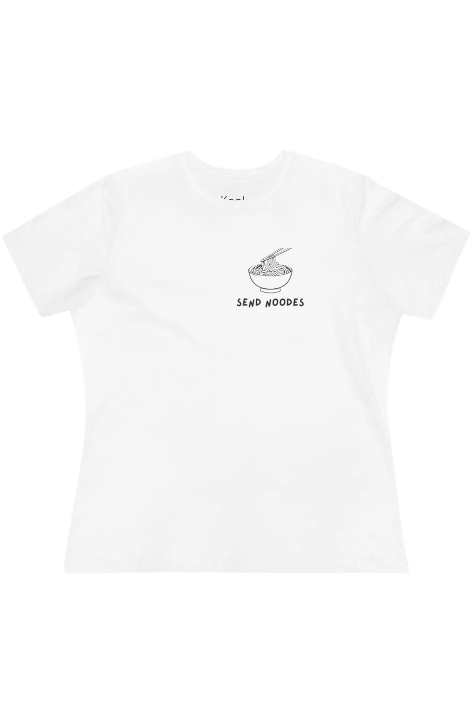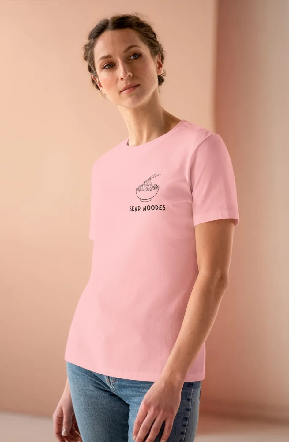 Discover our Women's Light Cotton Tee "Send Noodes" - the perfect blend of comfort, style, and cheeky humor. This ultra-soft, breathable tee is designed for women who dare to stand out with a unique, naughty twist. Featuring clever wordplay that’s equal parts funny and flirtatious, "Send Noodes" makes an ideal statement piece for casual outings, a playful night look, or even as a fun gift for your boyfriend. Its relaxed fit and premium light cotton construction ensure a comfortable, all-day wear, while its eye-catching design turns heads and sparks conversations wherever you go. Elevate your wardrobe with this flirty, pun-filled essential that perfectly captures the art of playful romance and modern style.